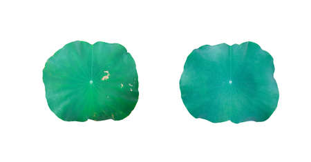 Lotus leaf isolated on white background. Top view. Flat lay.