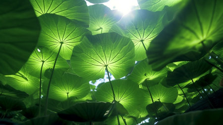 Generative AI : lotus green leaf texture under view with sunlight
