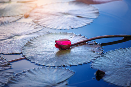 beautiful pink lotus flower or water lily on surface of blue pond