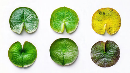 Isolated water lily leaves with clipping path on white background