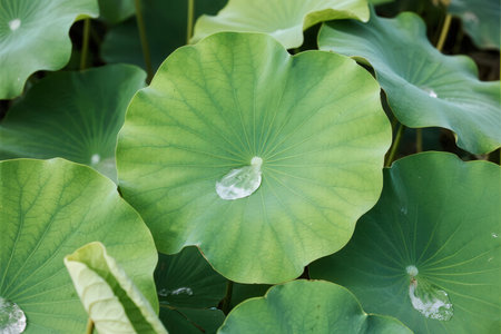 Beautiful water drops on lotus leaf