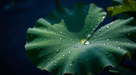 Lotus leaf with water droplets, close up. Nature background