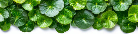 Artistic close-up of fresh gotu kola leaves with visible veins and texture against a bright white background for medicinal concepts.