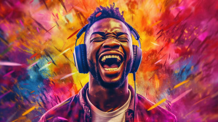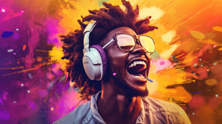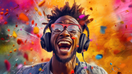 candid shot of an excited young african man party with headphones. beautiful Generative AI AIG32