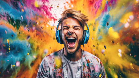 candid shot of an excited young scandinavian man party with headphones. beautiful Generative AI AIG32