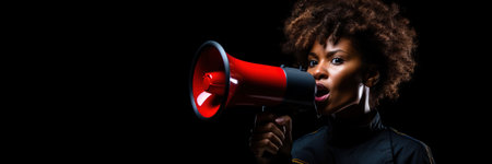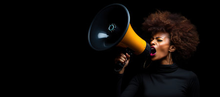 Generative AI, Studio shot of African woman using a megaphone against a black background, a powerful statement