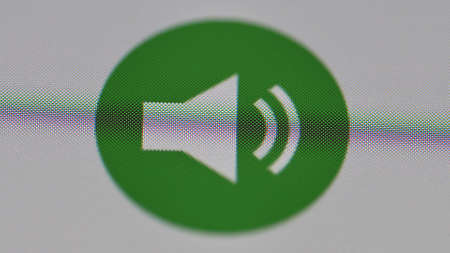 A colorful speaker with rainbow colors. The speaker is on a purple background. The speaker is a symbol of music and sound