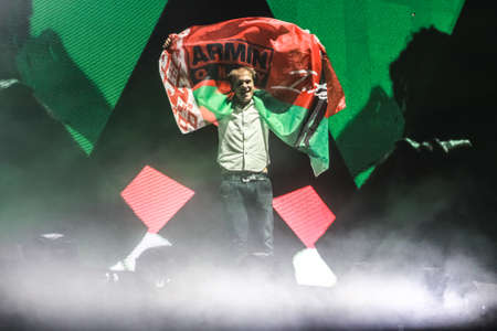 MINSK, BELARUS - FEBRUARY 21 Members of ARMIN ONLY Intense show with Armin van Buuren in Minsk-Arena on February 21, 2014