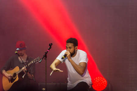 Kiel, Germany - June 24th 2016: The musican Adesse performs with his band on the Hörn stage during the Kieler Woche 2016