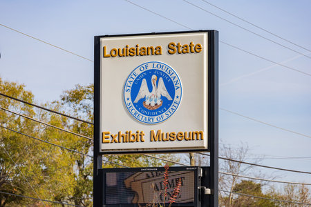 Louisiana, DEC 23 2021 - Close up shot of the sign of Louisiana State Exhibit Museum