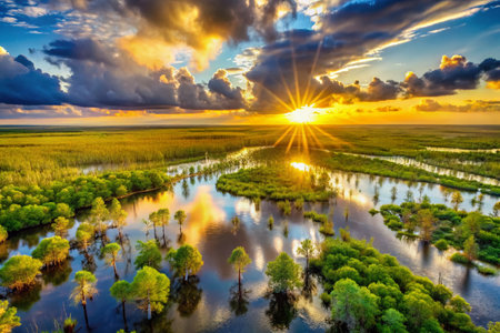 Golden Hour Sunset Aerial View, Everglades National Park, Florida