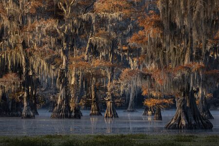 Beautiful cypress trees on Caddo Lake, Texas, on a winter morning