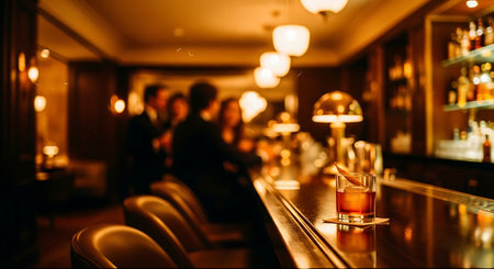 Cozy bar interior with patrons enjoying drinks in a warm atmosphere during an evening gathering
