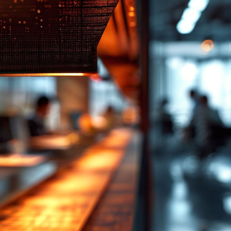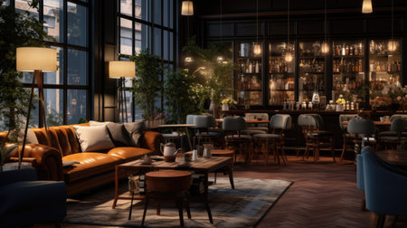 Cozy interior of a modern cafe with ambient lighting during evening hours
