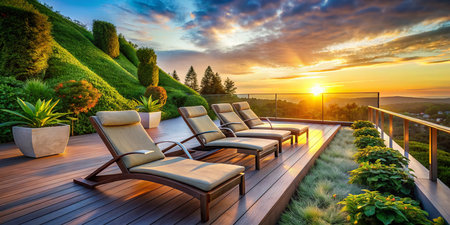 Cozy outdoor chaise lounges. Generative AI