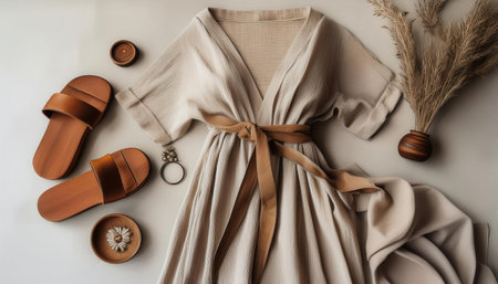 Casual stylish woman outfit. Flatlay of every woman dresses