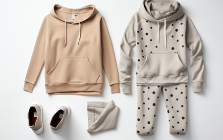 Neatly folded workout clothes and stylish sneakers are arranged on a neutral surface, creating an inviting setup for fitness and exercise sessions.