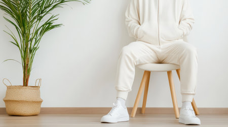 A Cozy minimalist athleisure outfit with joggers and white sneakers