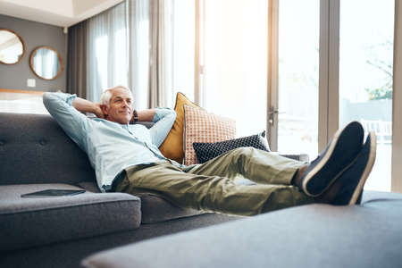 In the home zone. Shot of a senior man relaxing on the sofa at home.
