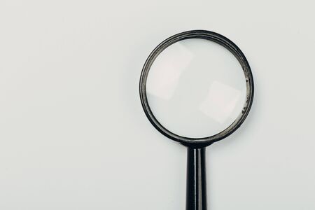 A classic magnifying glass resting on a smooth white surface. This image symbolizes investigation and inquiry, ideal for educational or professional contexts.