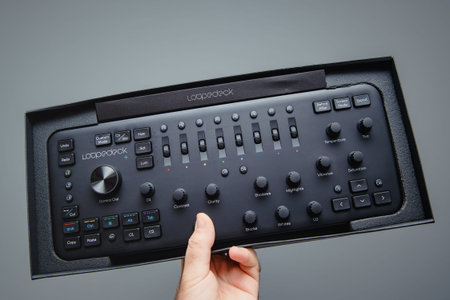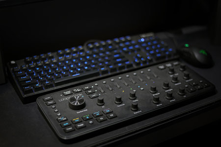 COLOGNE, GERMANY - CIRCA SEPTEMBER, 2018: close up shot of Loupedeck+ photo editing console as seen at Photokina Exhibition. Photokina is a trade fair held in Europe for the photographic and imaging industries.