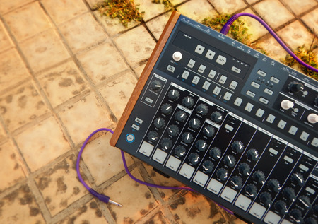 Making music using modular synthesizers. Electronic music and professional music equipment concept.