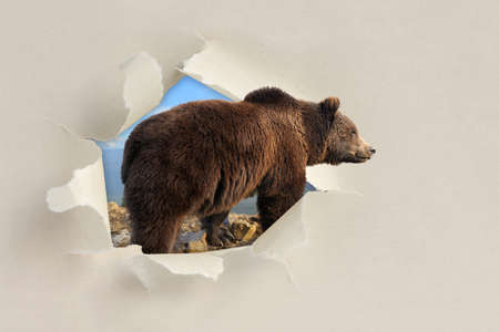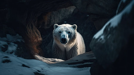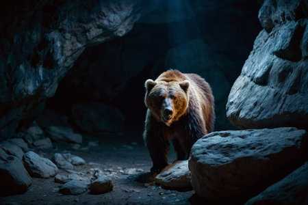 Grizzly Bear in the cave. Wildlife scene from nature.