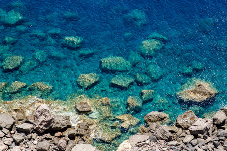 Rocks in the sea off the coast of Cyprus. Warm sea and picturesque coastal views in November.