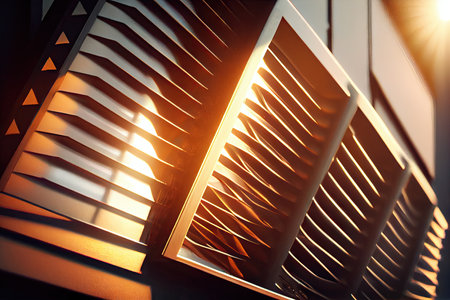 close-up of window louver, with sunlight filtering through, created with generative ai