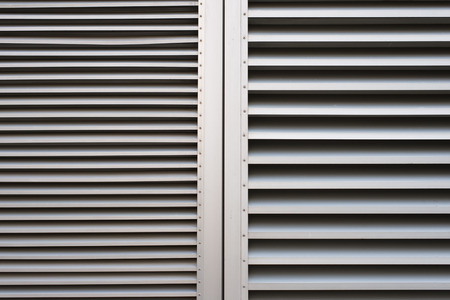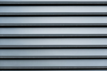 Panorama of Silver louvered aluminum wall pattern and background seamless