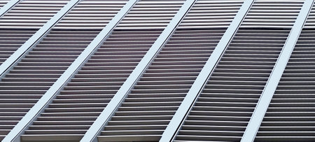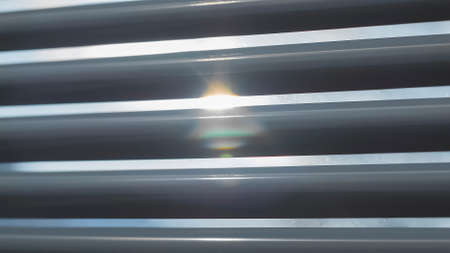 Steel industrial horizontal blinds as texture, close-up.