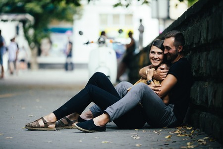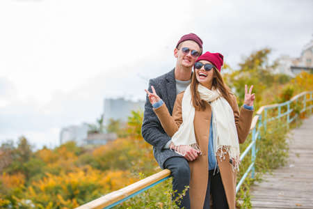 Young happy couple in love on a walk. Loving couple. Portrait of a fabulous couple.