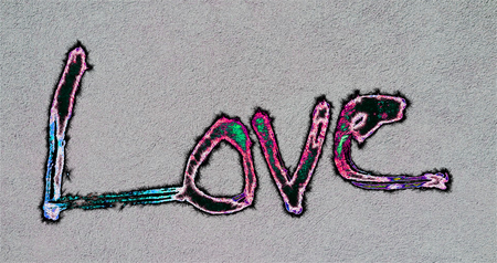 love painted, the word love hand-painted, artistic word love, multi-colored textured hand-drawn brush lettering on gray grainy texture.