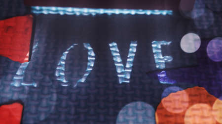 Valentine's Day minimal banner with love word and letters, macro close up background photo