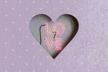 The word Love is made up of red letters on a pink background. Valentine's Day lovers concept.
