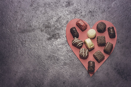 various chocolate on paper red heart shape for valentine's day