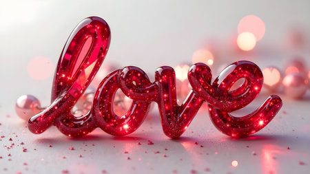 Red Love Lettering with Crystals. Valentine's Day Card. High quality photo