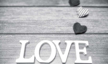 word love made up of white wooden letters on a wooden background