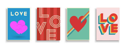 Set of retro covers, templates, placards, brochures, banners, flyers and etc. Stylish greeting postcards, posters, invitation, tags - fashion design 80 - 90s. Vintage love creative cards