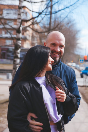 Grodno, Belarus - October 18, 2017: A married couple makes a tour of the city of Grodno, Belarus