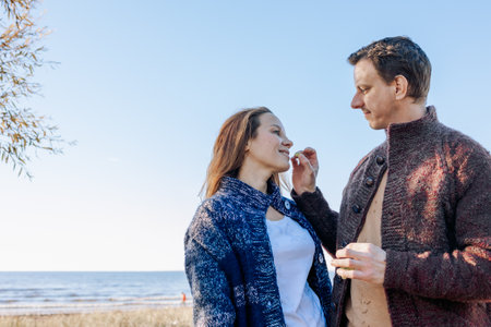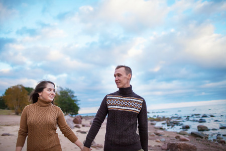 couple in love near the sea autumn. beautiful places in Europe