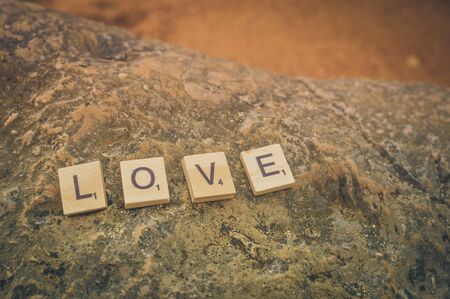LOVE- word made from red letters on wooden background