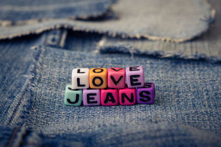cubes with letters love jeans on a jeans background