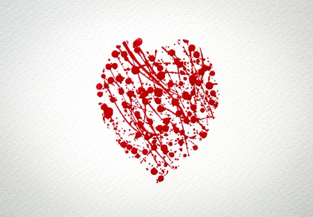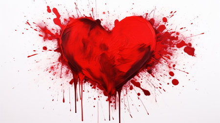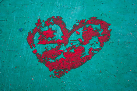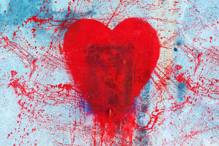 Red heart shape graffiti symbol on wall with paint splatter effect