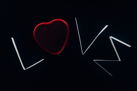 Abstract background, conceptual photo of love, passion, desire, flirt, written word on the dark vintage backdrop, romantic message for Valentines day