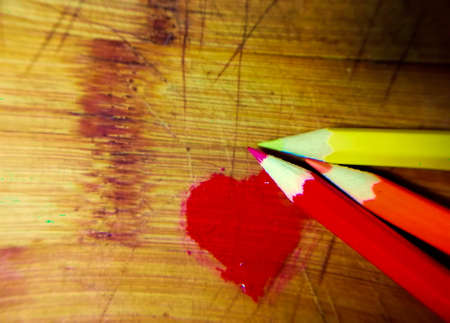 The red heart symbol is located on a crack in the wall. Vertical foto