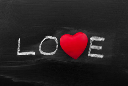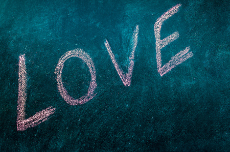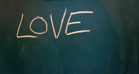 love title written with chalk on blackboard