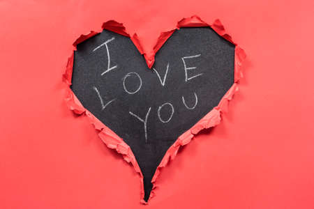 love and hearts. romance happiness and emotion. message handwritten on black layered paper background.