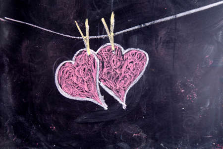 Hearts drawn in white chalk on a blackboard, background image