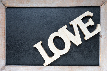 Wooden blackboard with wooden letters and the word Love